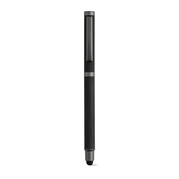 Construída com aço inoxidável reciclado, esta esferográfica possui um sistema de tampa que inclui uma ponteira touch, contendo 1 Km de tinta Dokumental®.