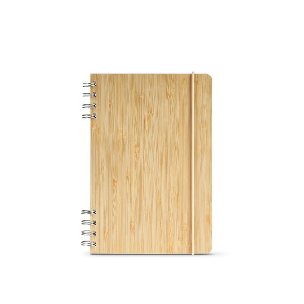 Cuidadosamente feito com capa de bambu, o nosso caderno A5 destaca-se.