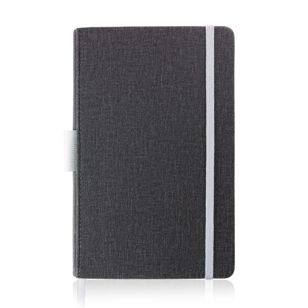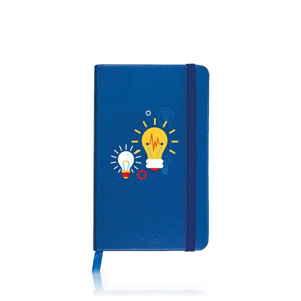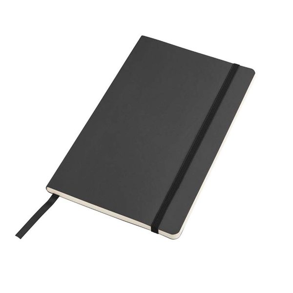 Bloco de notas A5 pautado, com capa em cartão e bolsa