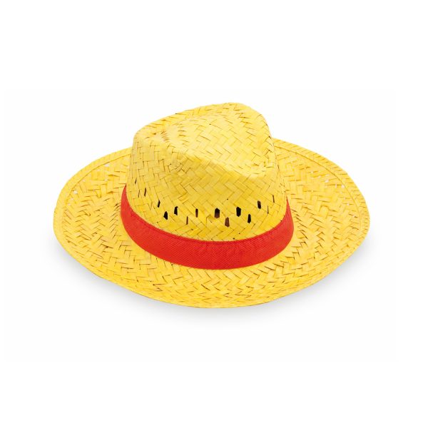 Chapéu em PP (disponível em várias cores) com fita branca em poliéster. Para encomendas sem personalização a fita é fornecida separada do chapéu