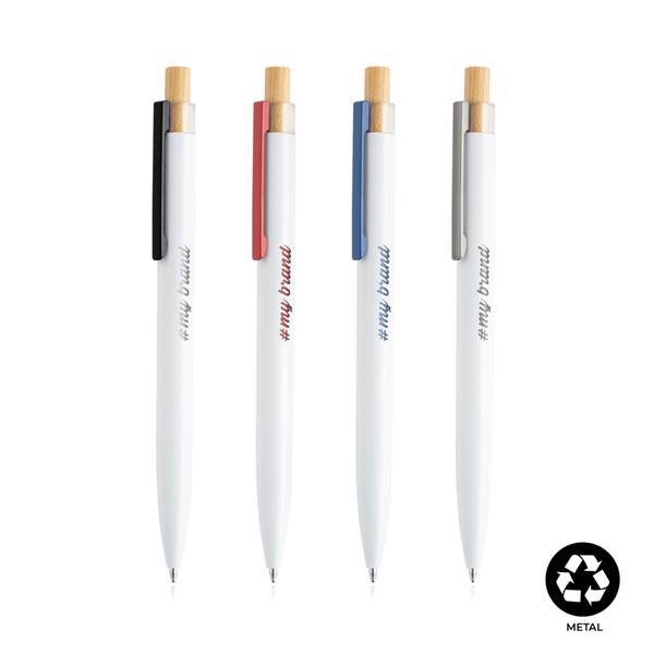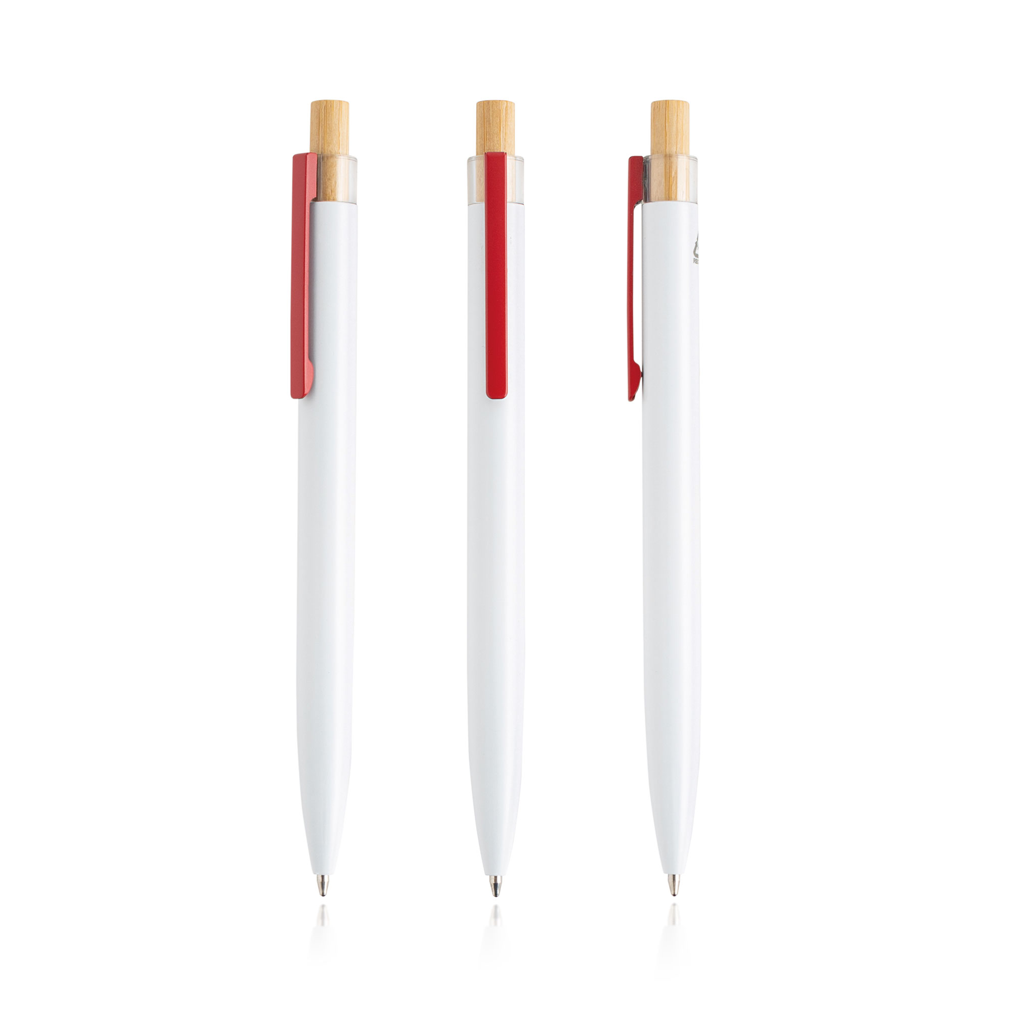 Esferográfica em alumínio reciclado, detalhe em bambu