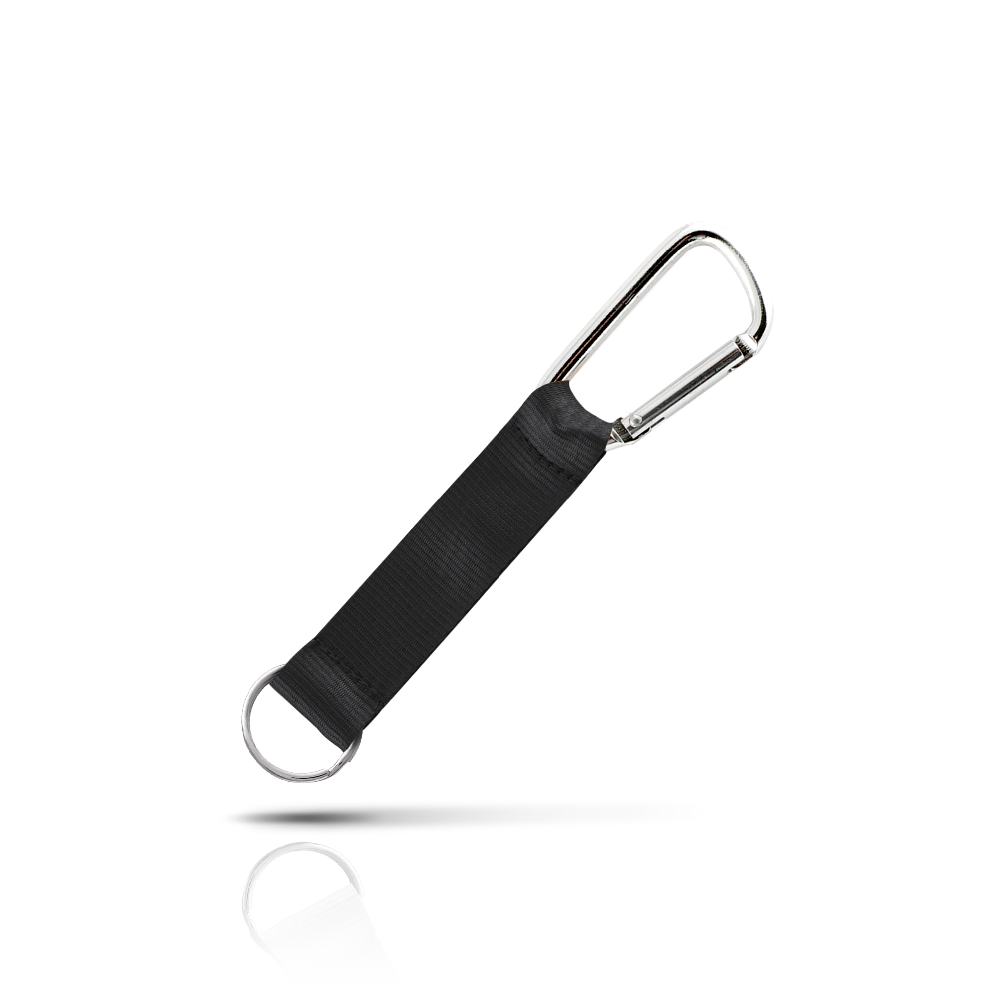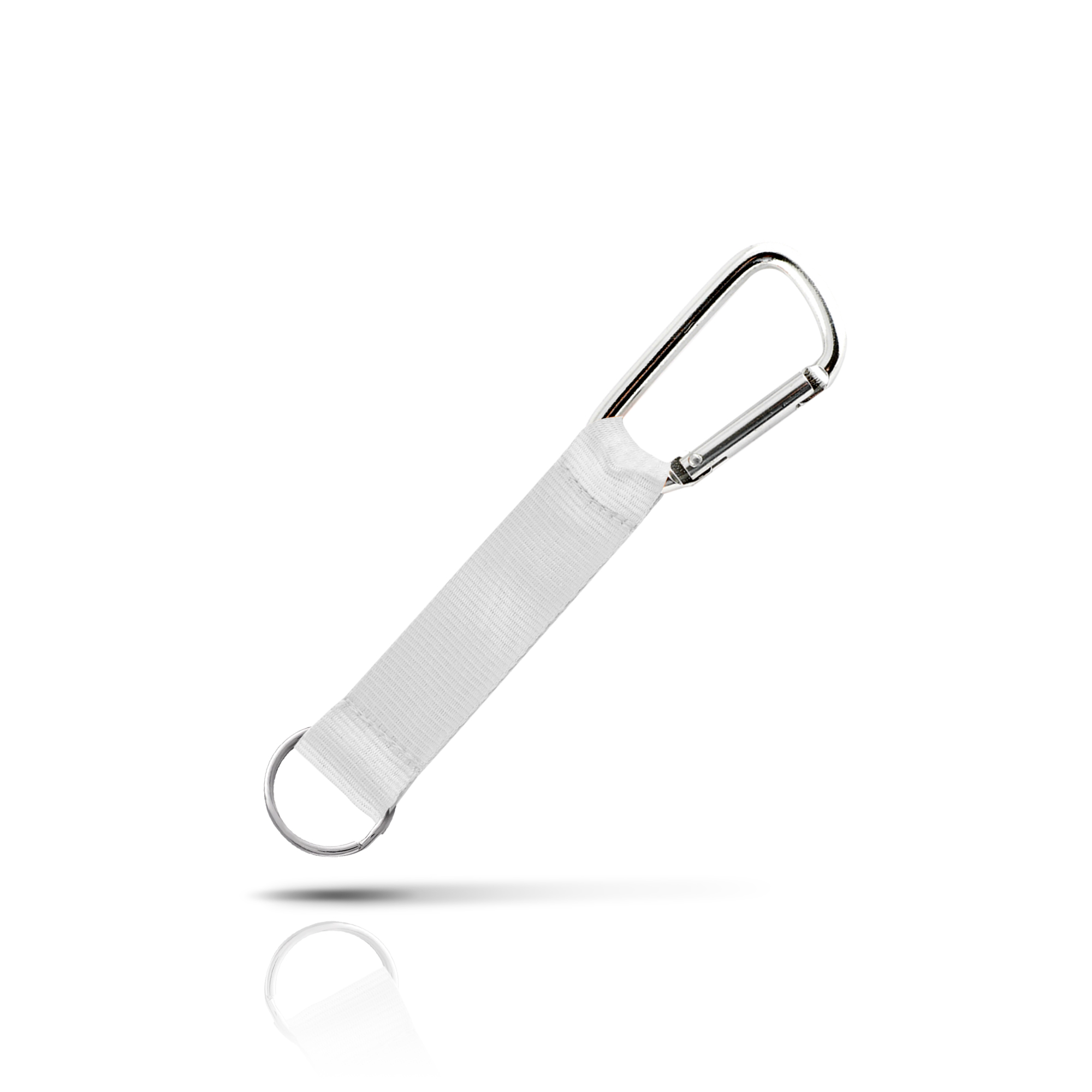 Porta-chaves com fita e mosquetão. Um porta-chaves clássico, colorido e com mosquetão metálico. A fita larga é ótima para personalizar.