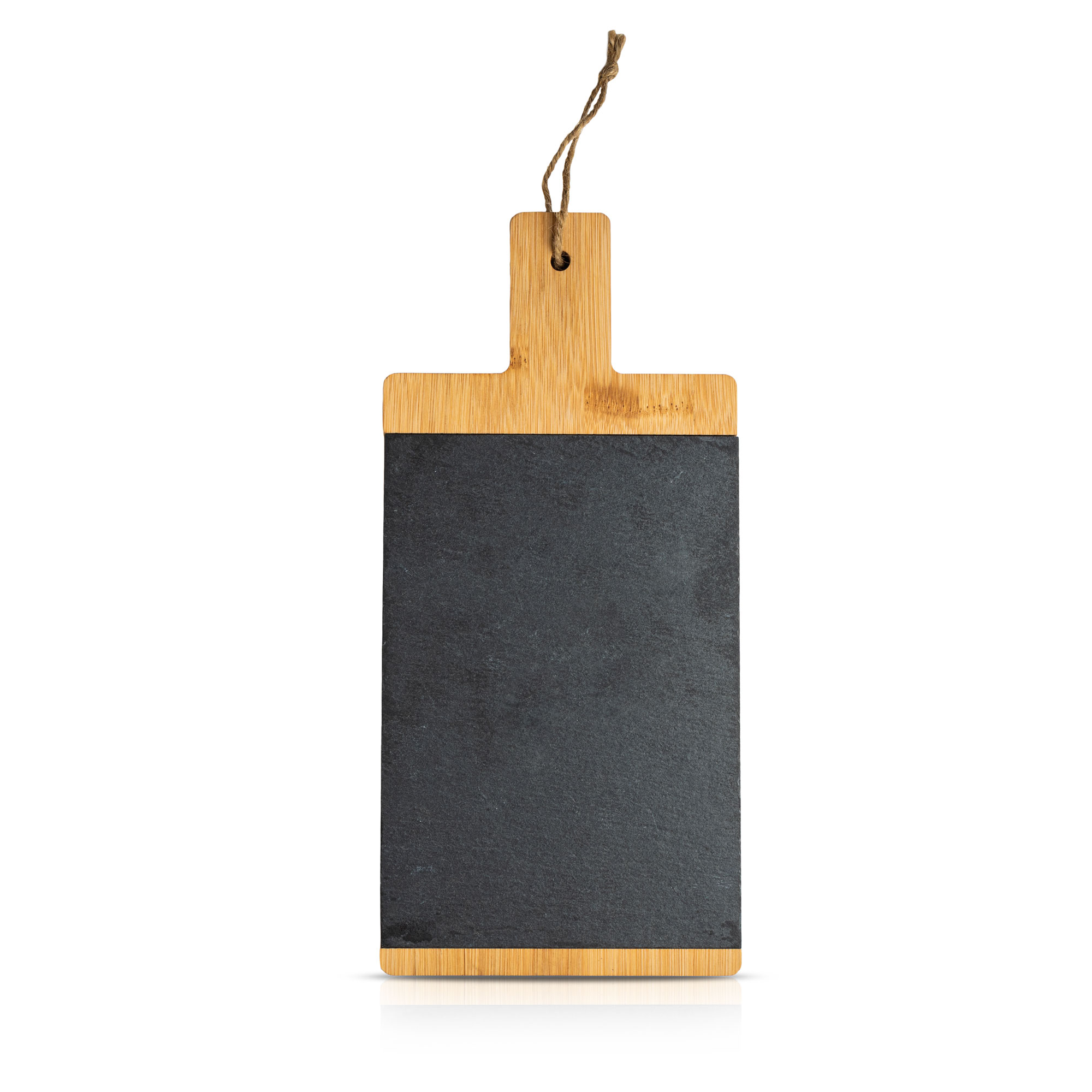 Tábua em bambu com ardósia. Na nossa nova coleção de bambu para decorar a sua casa ou o seu restaurante, entra a nossa Bambura. Uma tábua de servir ou de corte, que pode ser usada em conjunto (ardósia + bambu) ou em separado, fazendo assim deste brinde um 2 em 1.Resistente e apto para contacto alimentar.