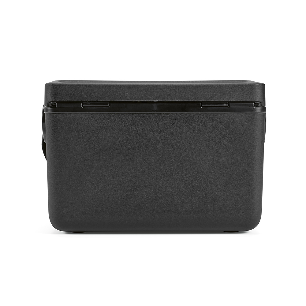 Geleira de plástico reciclado de 12L: durável, ecológica, com uma alça de transporte prática.