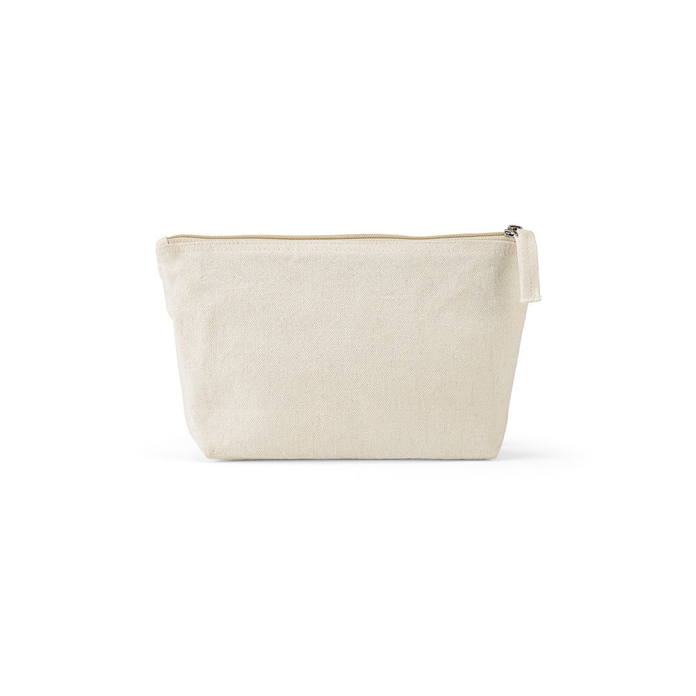 Abrace as viagens ecologicamente com a nossa bolsa de higiene pessoal de algodão reciclado.