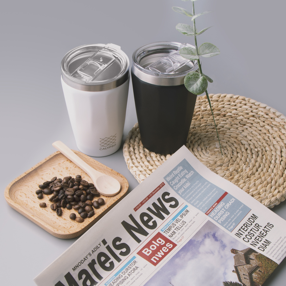 Design e Sustentabilidade para manter a sua bebida quente ou fria conforme perferir. Copo térmico 330ml em aço inoxidável reciclado. Calypso Cup é a solução mais sustentável para manter a temperatura e sabor das bebidas por mais tempo. Com um design elegante o Calypso Cup é produzido com aço inoxidável reciclado, uma alternativa ambientalmente consciente aos copos de plástico, ainda mais eficaz. Este produto tem uma elevada durabilidade e, no final da sua vida útil, poderá voltar a ser reciclado. O aço inoxidável tem uma das mais altas taxas de reciclagem entre os metais (90%), pode ser derretido e reutilizado na produção de novos produtos, reduzindo a necessidade de novas minerações e extração de matérias-primas. Além disso, a longa durabilidade do aço inoxidável, os baixos requisitos de manutenção, a eficiência energética e a versatilidade tornam-no uma escolha perfeita quando o cliente pretende soluções sustentáveis, reduzindo a sua pegada carbónica.