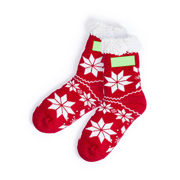 Par de meias antiderrapantes com motivos natalícios, destinadas para andar por casa. Em macio poliéster acrílico exterior e com um forro interno quente.