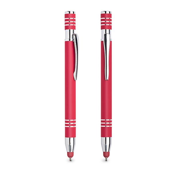 Esferográfica em alumínio, com acabamento em borracha, touch