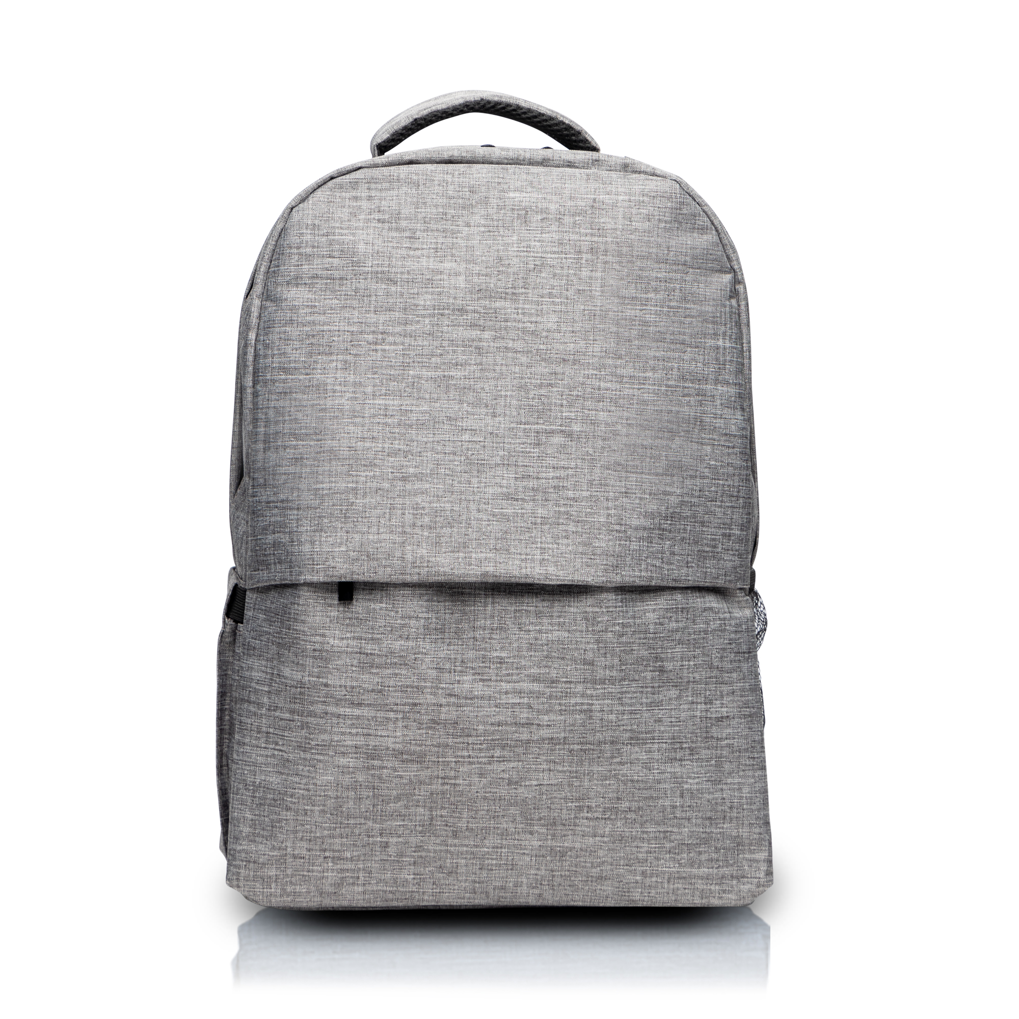 Mochila antirroubo em RPET para portátil 15,6”. Esta mochila é construida em material ecológico. Tem dois bolsos laterais e um frontal para vários espaços de arrumação. Tem ainda uma boa área de gravação para que possa destacar o seu logo. Com bolso antirroubo.