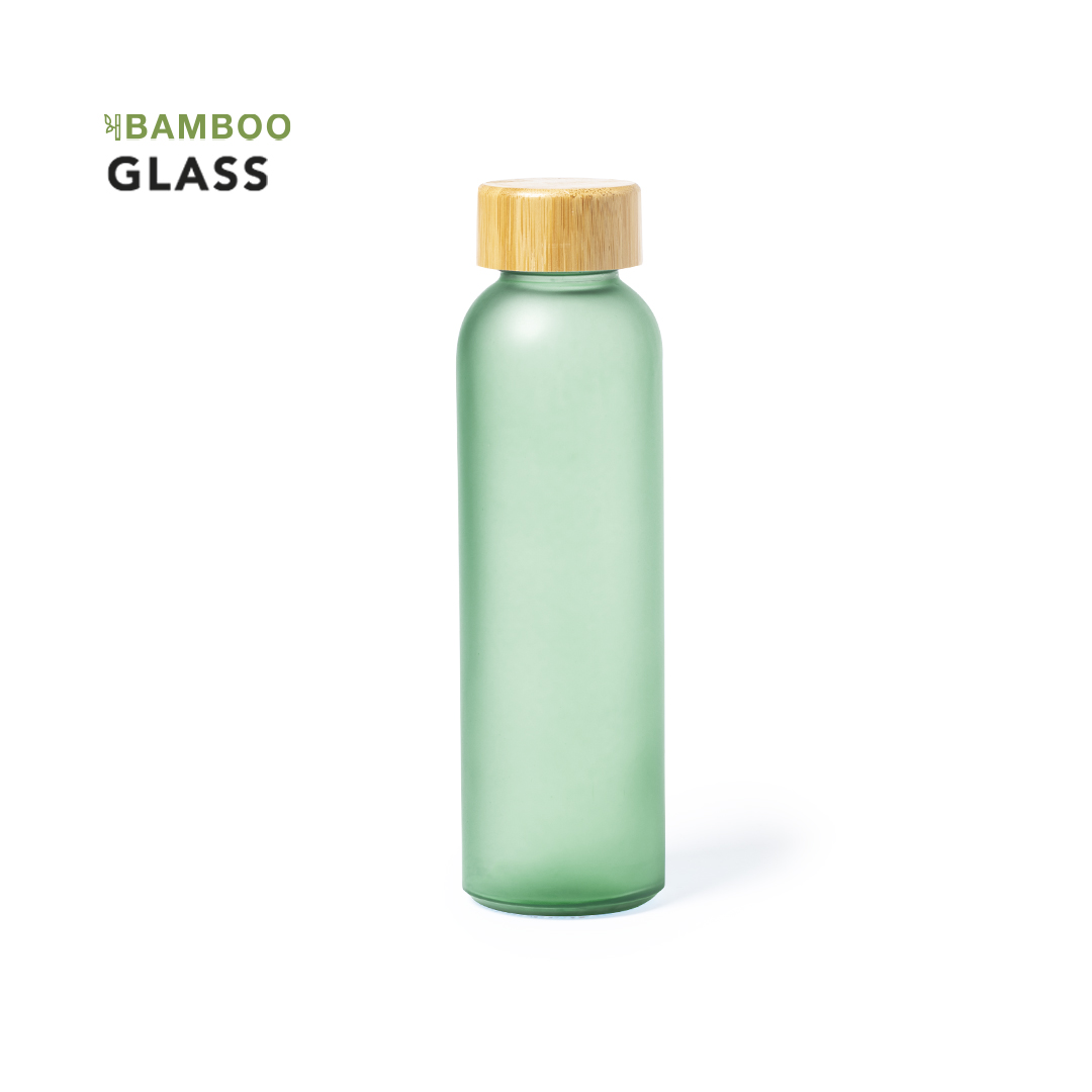 Garrafa da linha nature e 500ml de capacidade, com corpo fabricado em vidro, com tampa de rosca de bambu e livre de BPA. Disponível numa variada gama de cores e apresentada numa caixa individual de design eco.