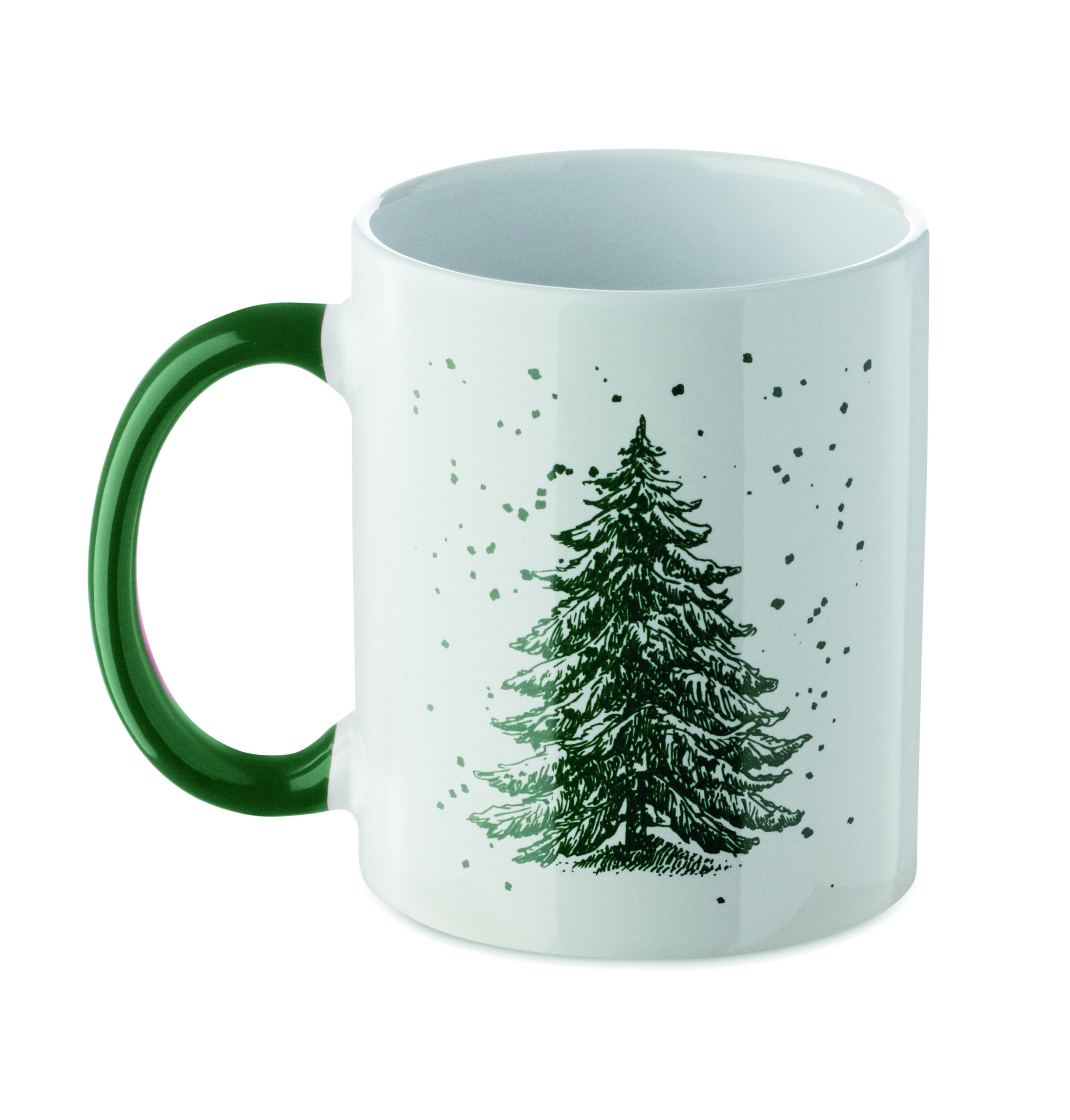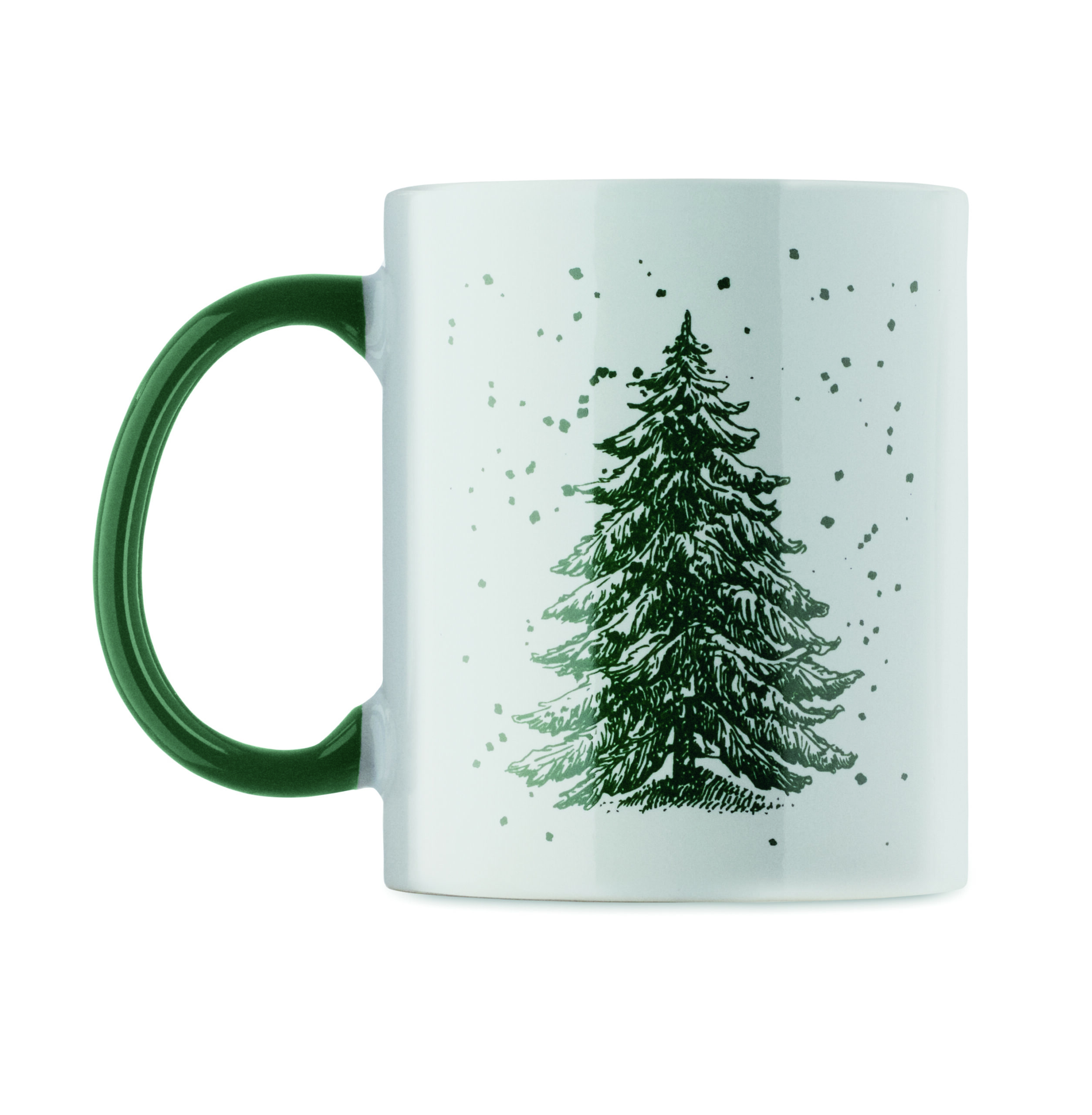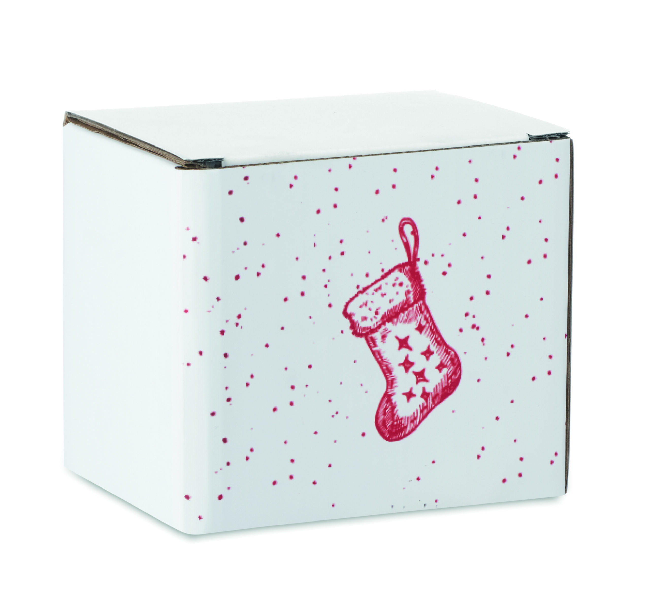 Caneca de cerâmica com padrão sazonal. Embalagem individual em caixa de cartão a condizer. Capacidade: 300 ml.