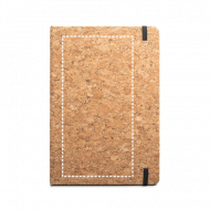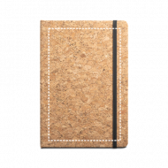 Conjunto de bloco de notas A5 e esferográfica em cortiça. Bloco com 192 páginas com linhas pautadas cor marfim, em papel proveniente de gestão florestal sustentável. Esferográfica de escrita a azul. Fornecido em caixa oferta de papel kraft