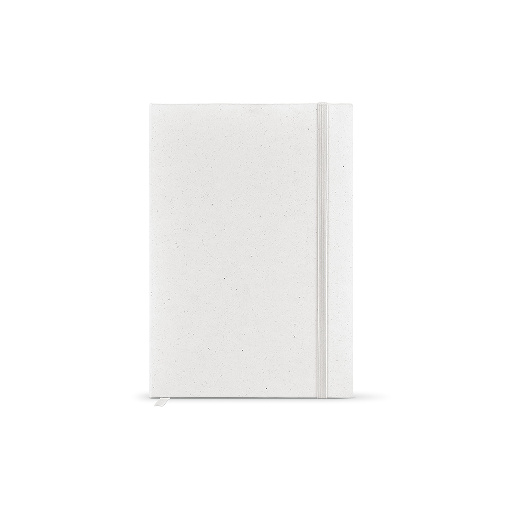 Apresentando o nosso bloco de notas A5 de capa dura feita de embalagens de leite. A capa reaproveitada, com 160 páginas recicladas de 70 g/m2 pontilhadas, de potencial criativo. Completo com elástico e marcador para sua comodidade. Abrace a criatividade sustentável!