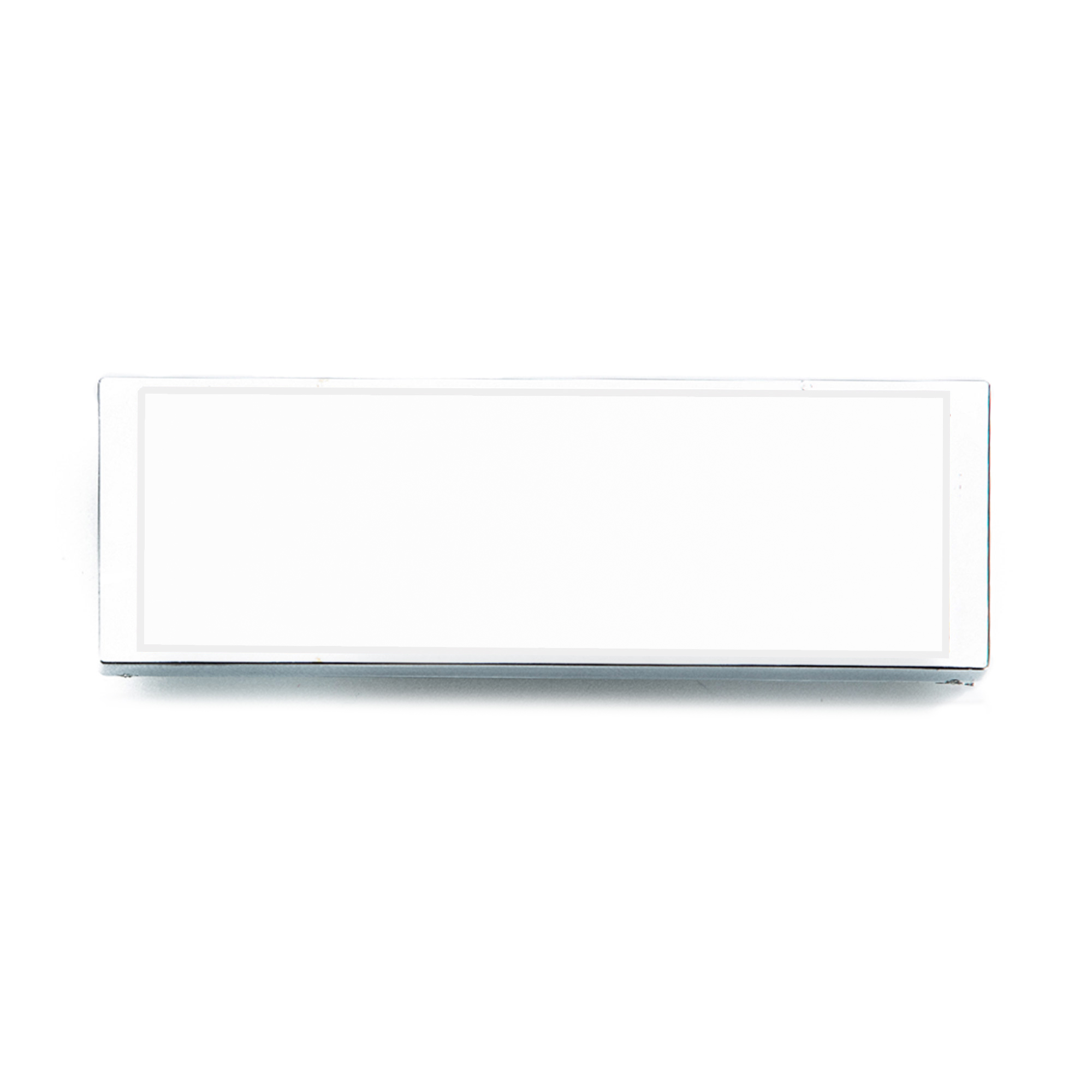 Crachá de identificação ID PLATE prateado brilhante, com fecho magnético de alta qualidade. Personalizável em 1 face com inserção de papel (64x22mm).
