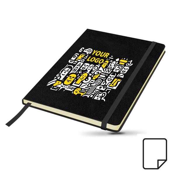 Bloco de notas A5, com capa em cartão e bolsa. Bloco com 80 folhas lisas de 70g. Capa colorida, com elástico e fitilho à mesma cor. Ótimo para personalizar. Associe-se à beleza da simplicidade.