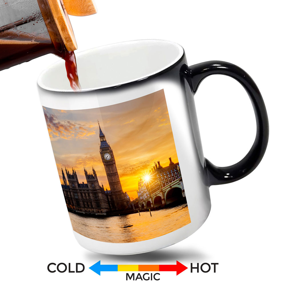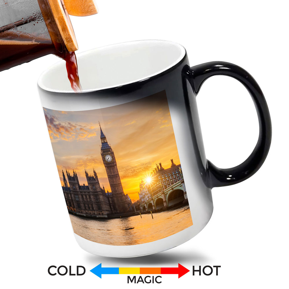 Caneca mágica para sublimação. Caneca para sublimação reagente ao calor. A sua gravação apenas fica visível quando a cerâmica aquece. 325ml capacidade. Apta para micro-ondas. Caixa branca de oferta.