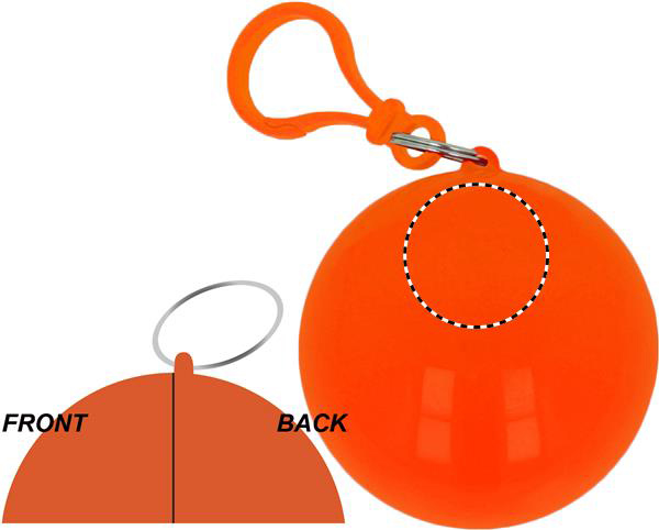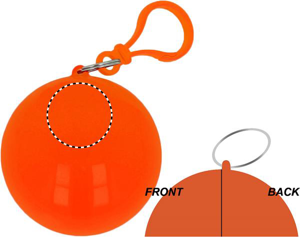 Impermeável chuva transparente fabricado em PE, apresentado numa bola de AS, inclui mosquetão para pendurar no cinto ou bolsa.
