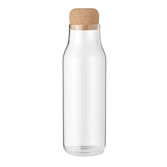 Garrafa de vidro borosilicato com rolha de cortiça. Capacidade: 1L. A cortiça é um material natural, devido à sua natureza estrutural e porosidade da superfície, o resultado final da impressão por item pode ter desvios.