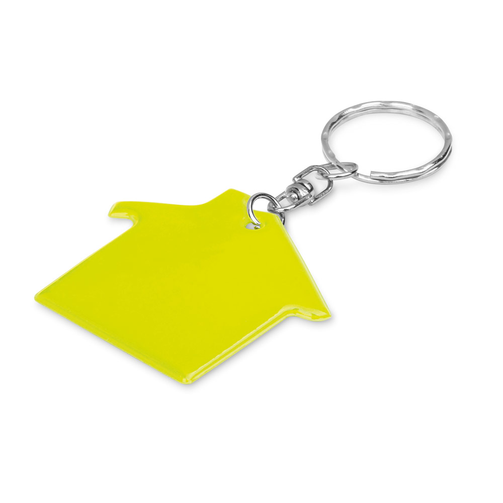 Porta-chaves fluorescente em formato de casa.