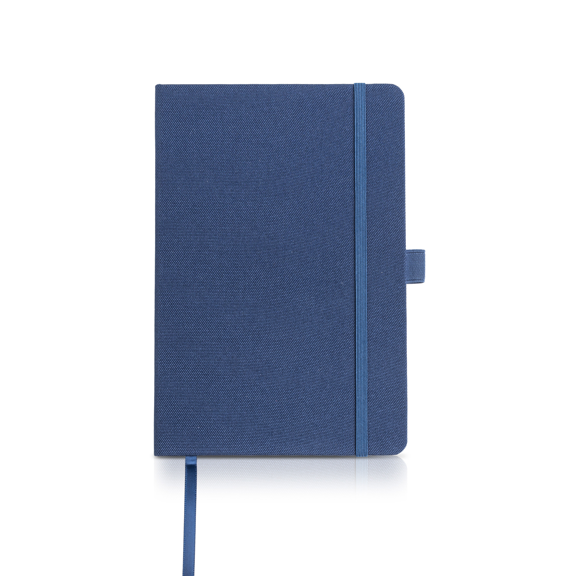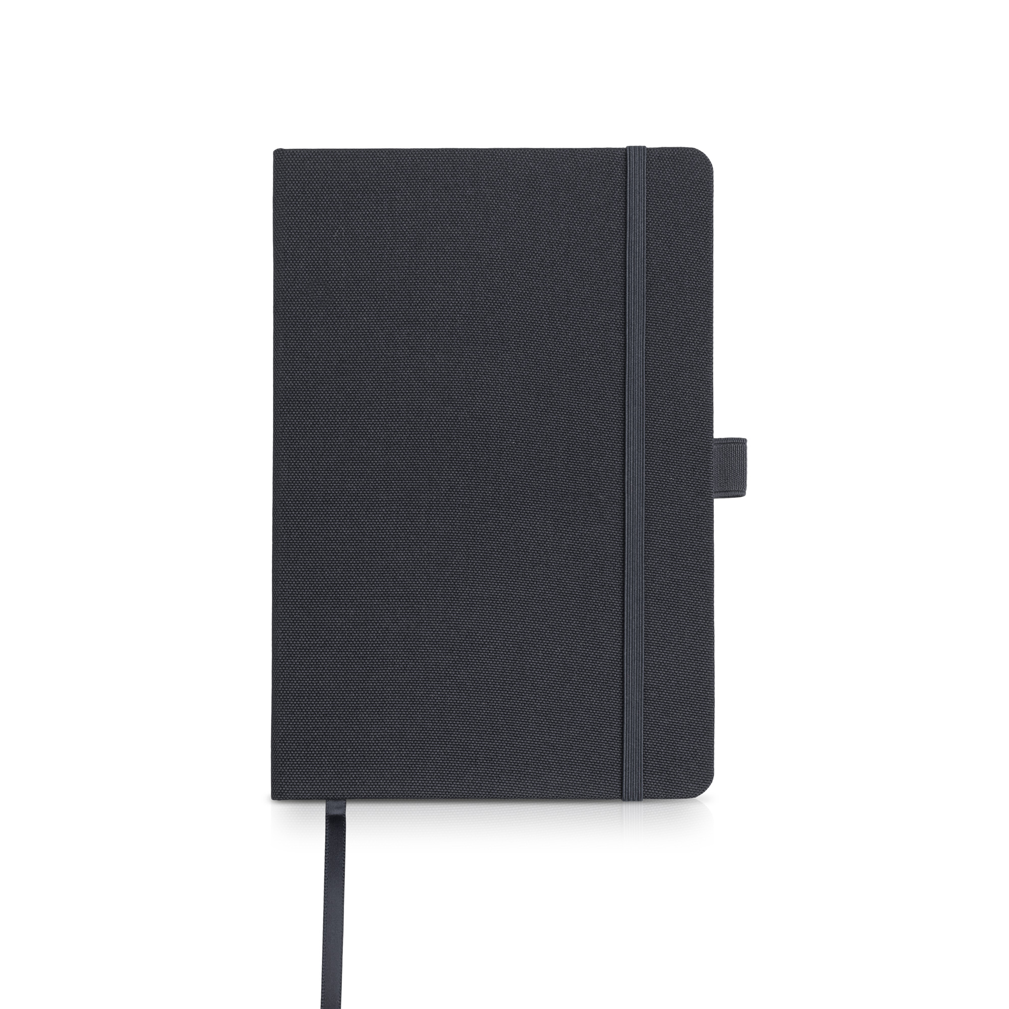 Bloco A5 em RPET com suporte para esferográfica. Um bloco clássico num material moderno e eco-friendly. Este bloco conta com 160 páginas de 70g certificadas com FSC, um fitilho, um elástico e um suporte de esferográfica. Todos os detalhes na mesma cor da capa. Um brinde sempre útil e, agora, mais amigo do ambiente.