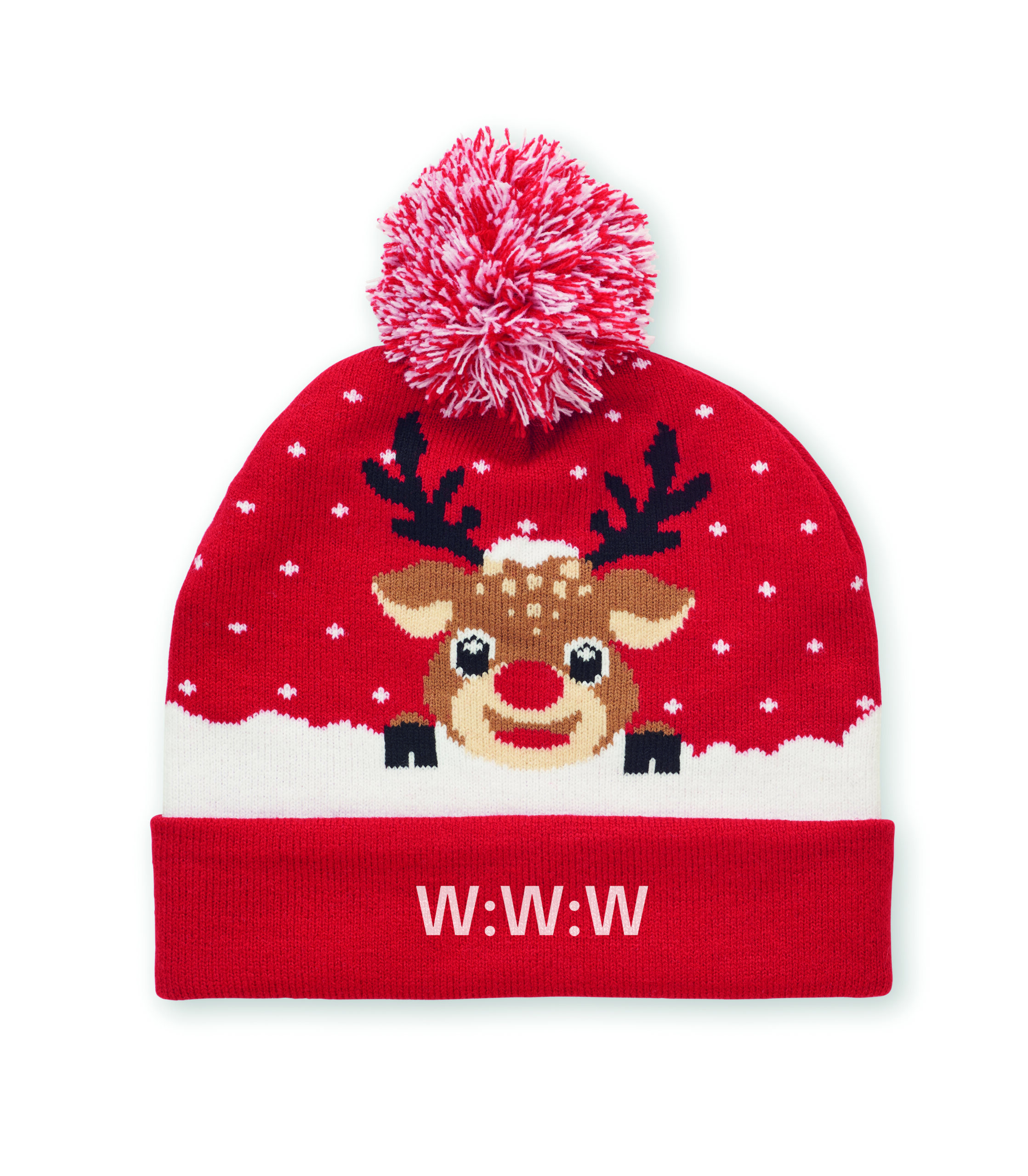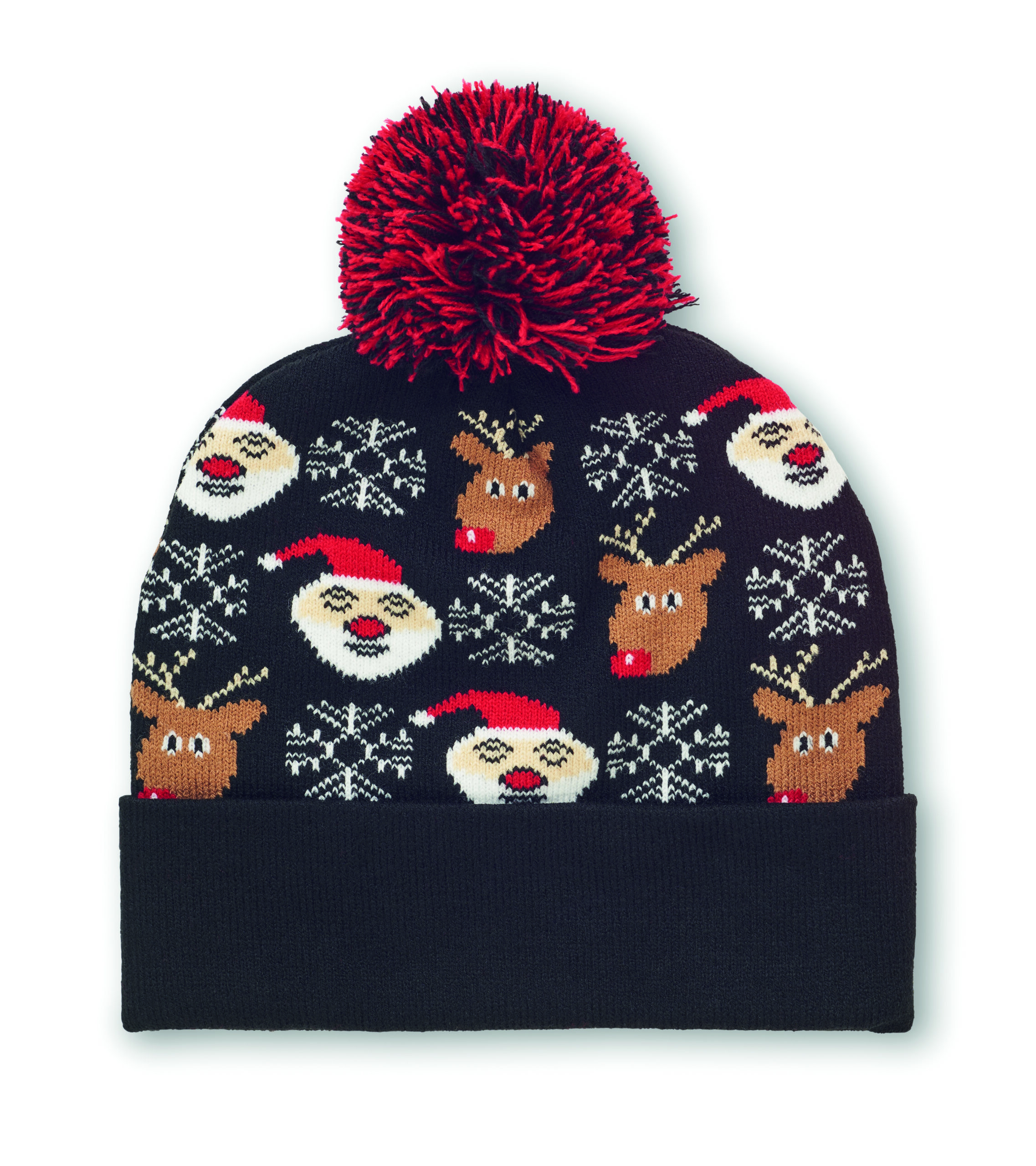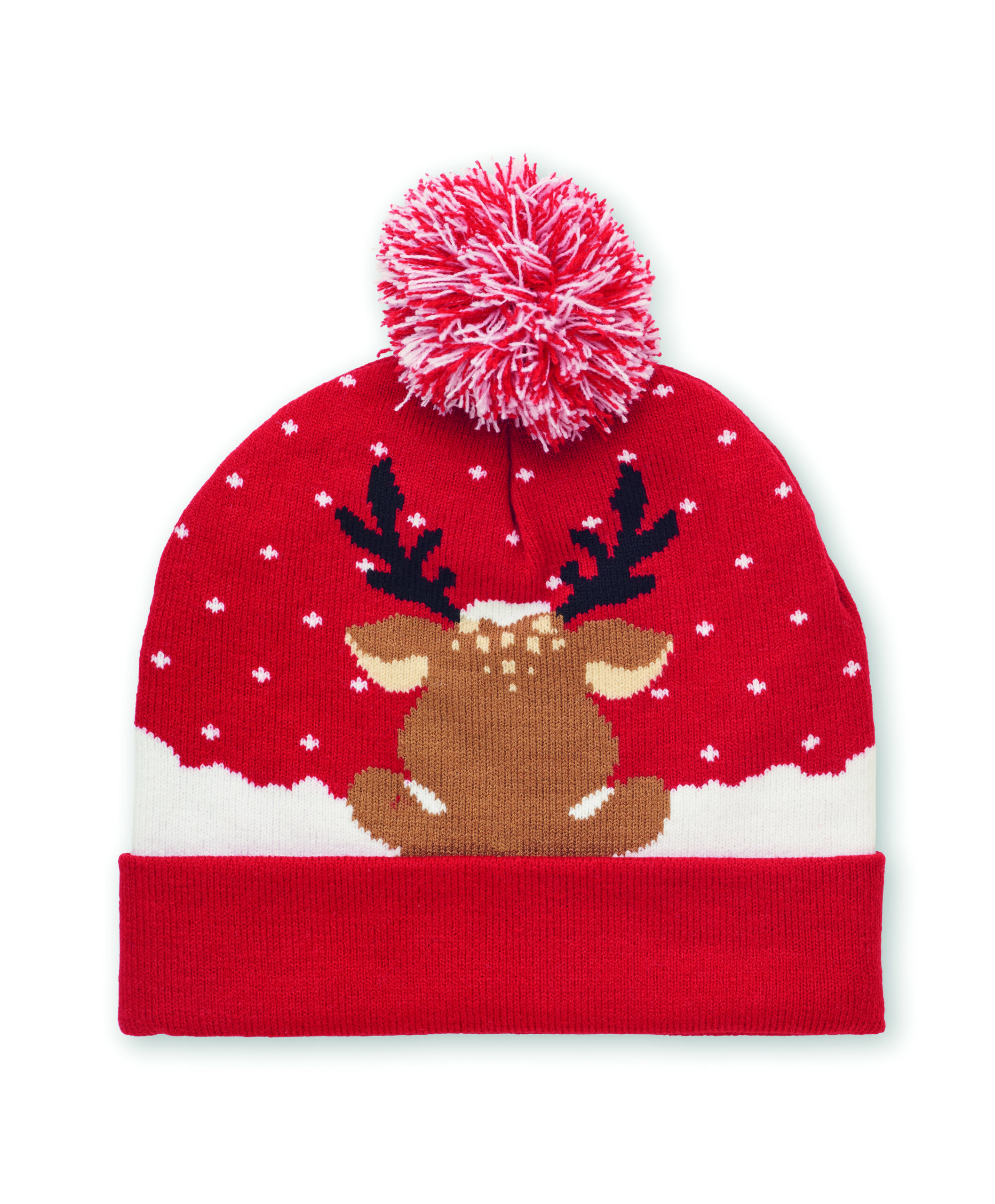 Gorro de Natal em tricô com punho e pompom em acrílico elástico macio