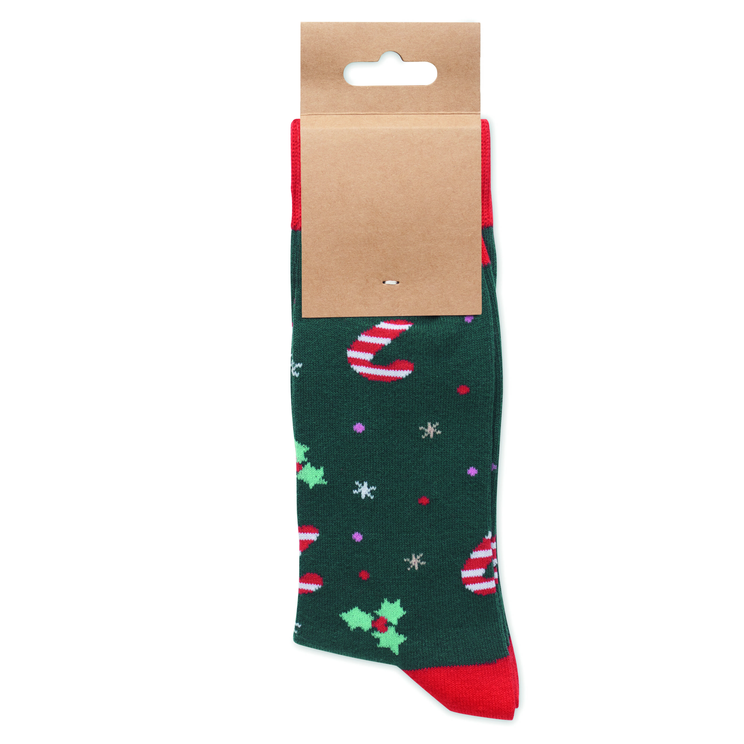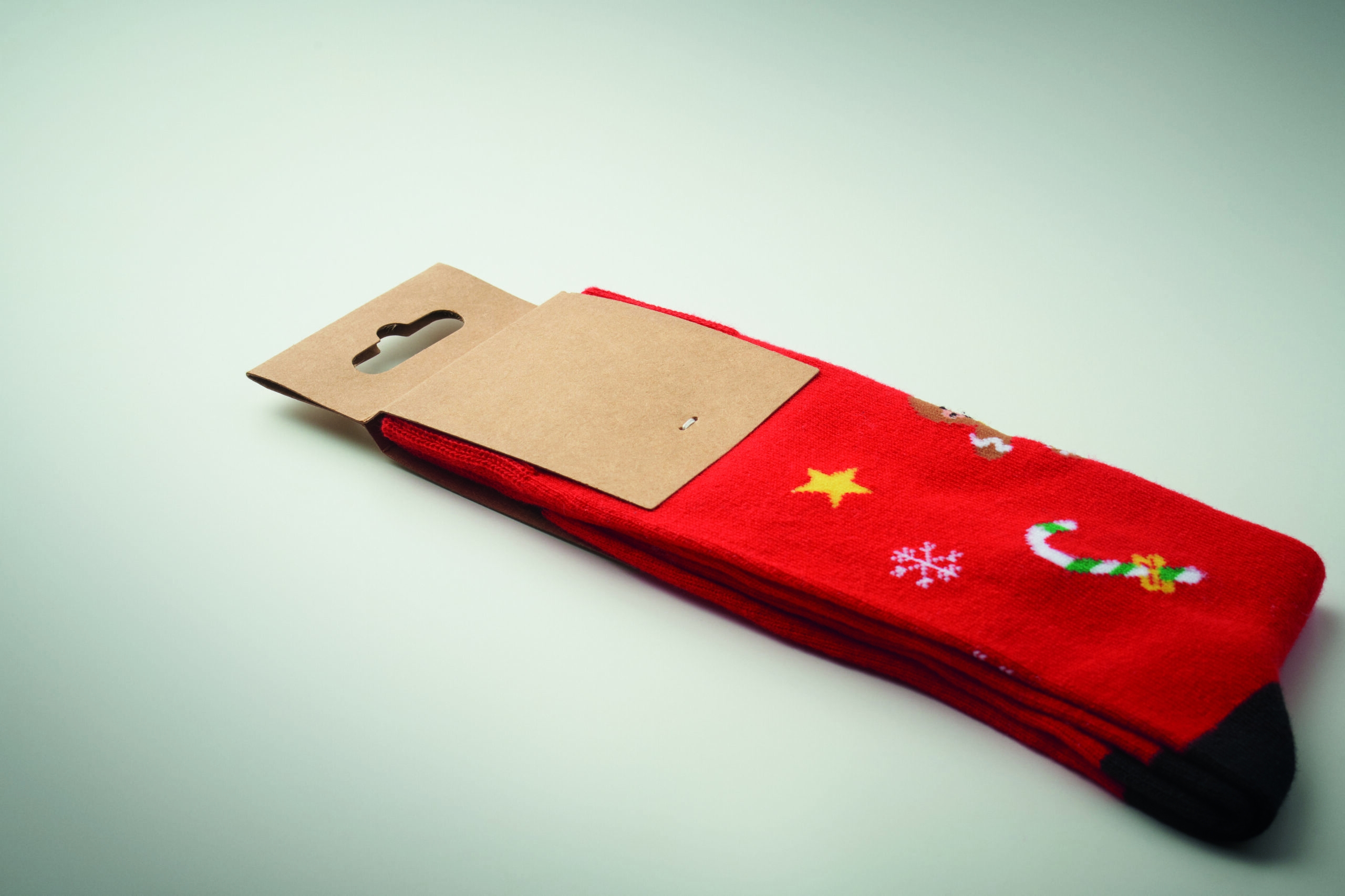 Par de meias com decorações de Natal em 75% algodão, 23% poliéster RPET e 2% elastano. Tamanho M = 43-46.