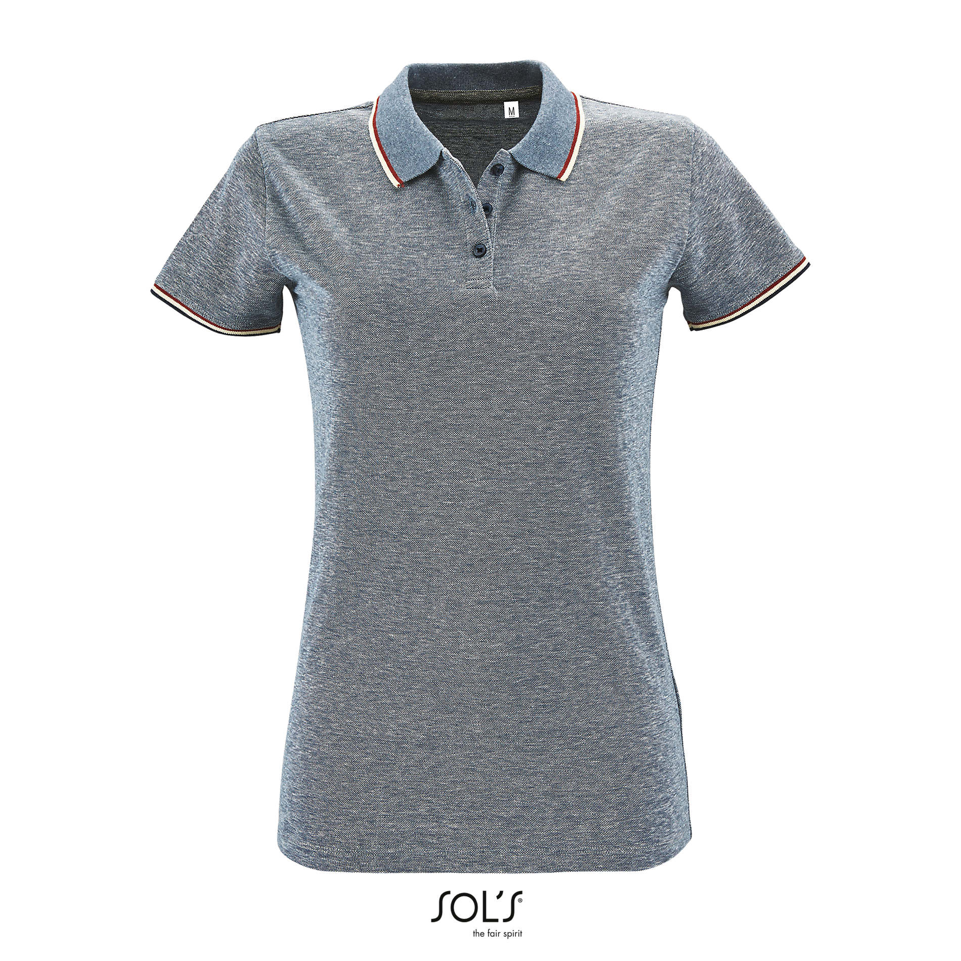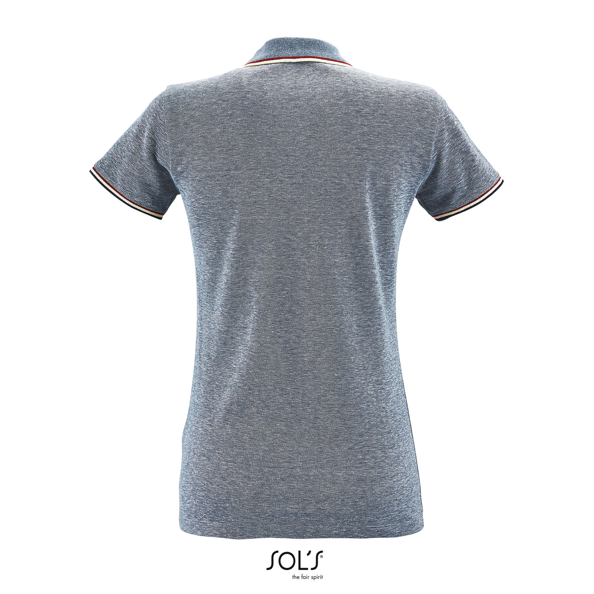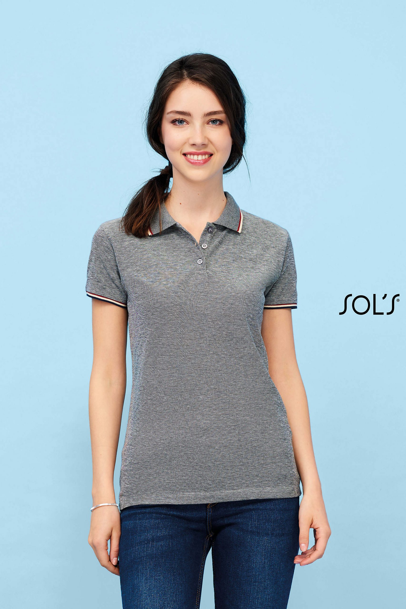 Manga curta – Carcela de 3 botões – Cortado e cosido – Corte cintado – Gola e acabamentos da manga em riscas contrastantes