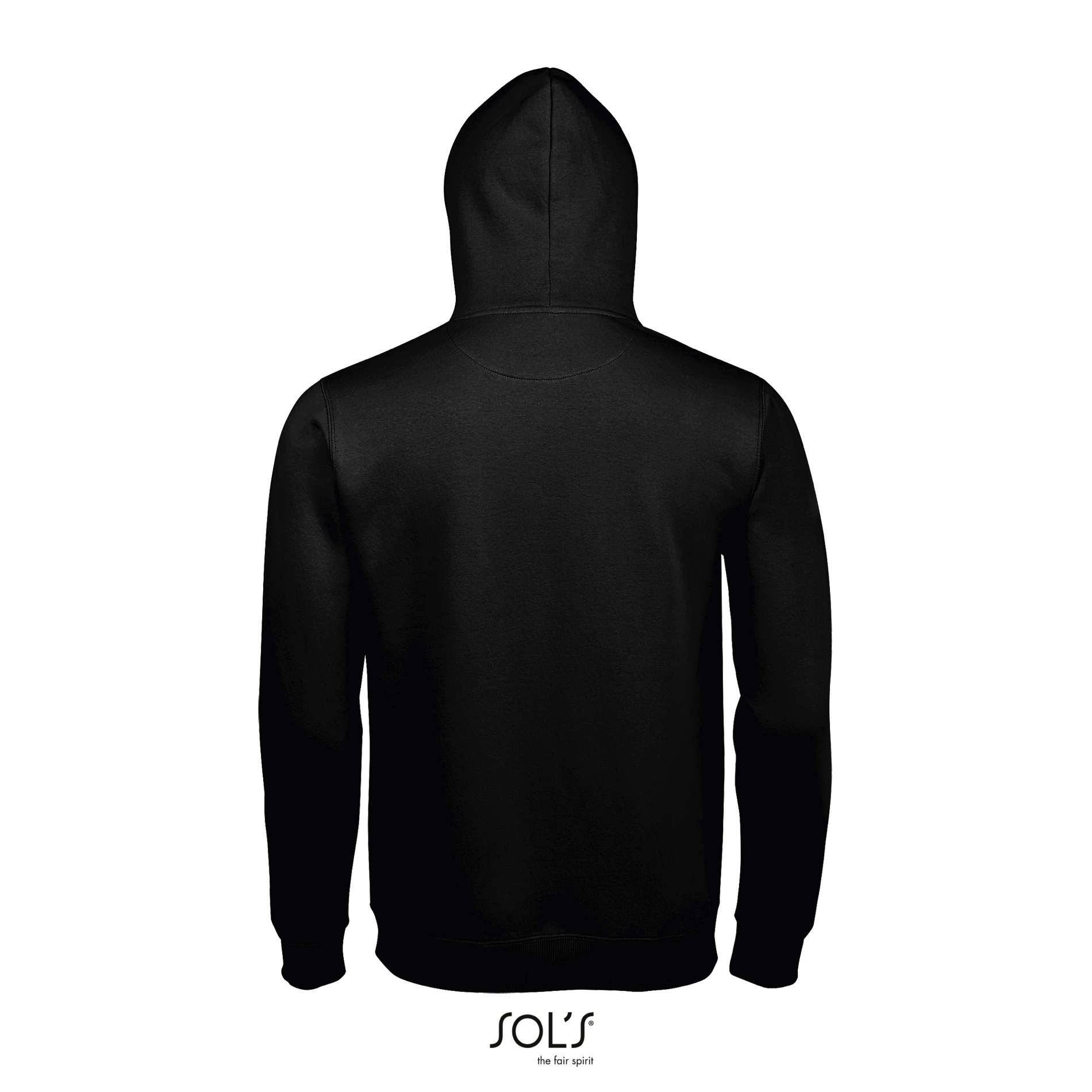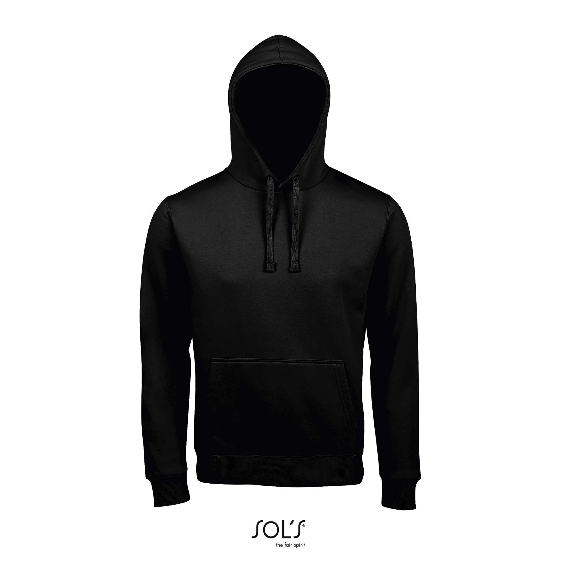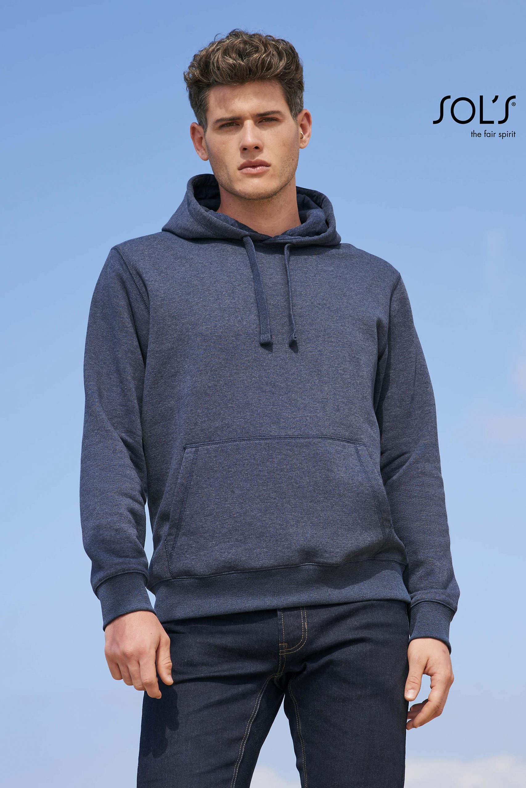 Bolsos marsupiais – Corte tubular – Capuz forrado com cordão de aperto – Rib 2×2 nos punhos e no cós – Meia lua no topo das costas – Fita de reforço na gola