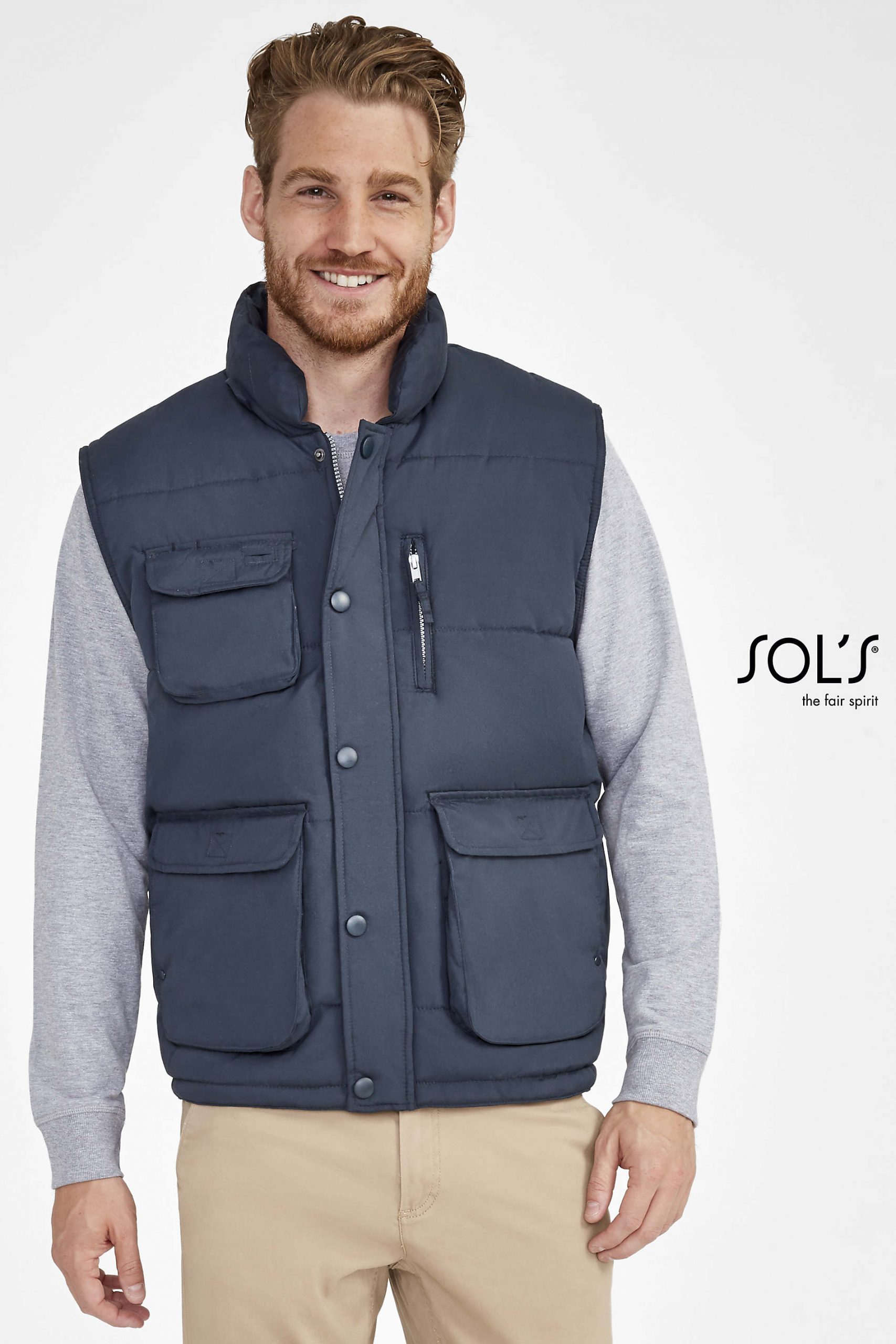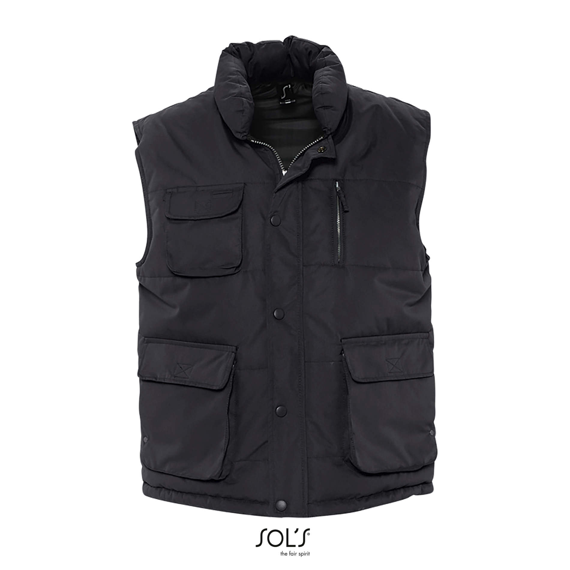 Gola alta almofadada – Vários bolsos – Cavas justas, resistentes à entrada de vento – Cordão elástico de aperto na cintura