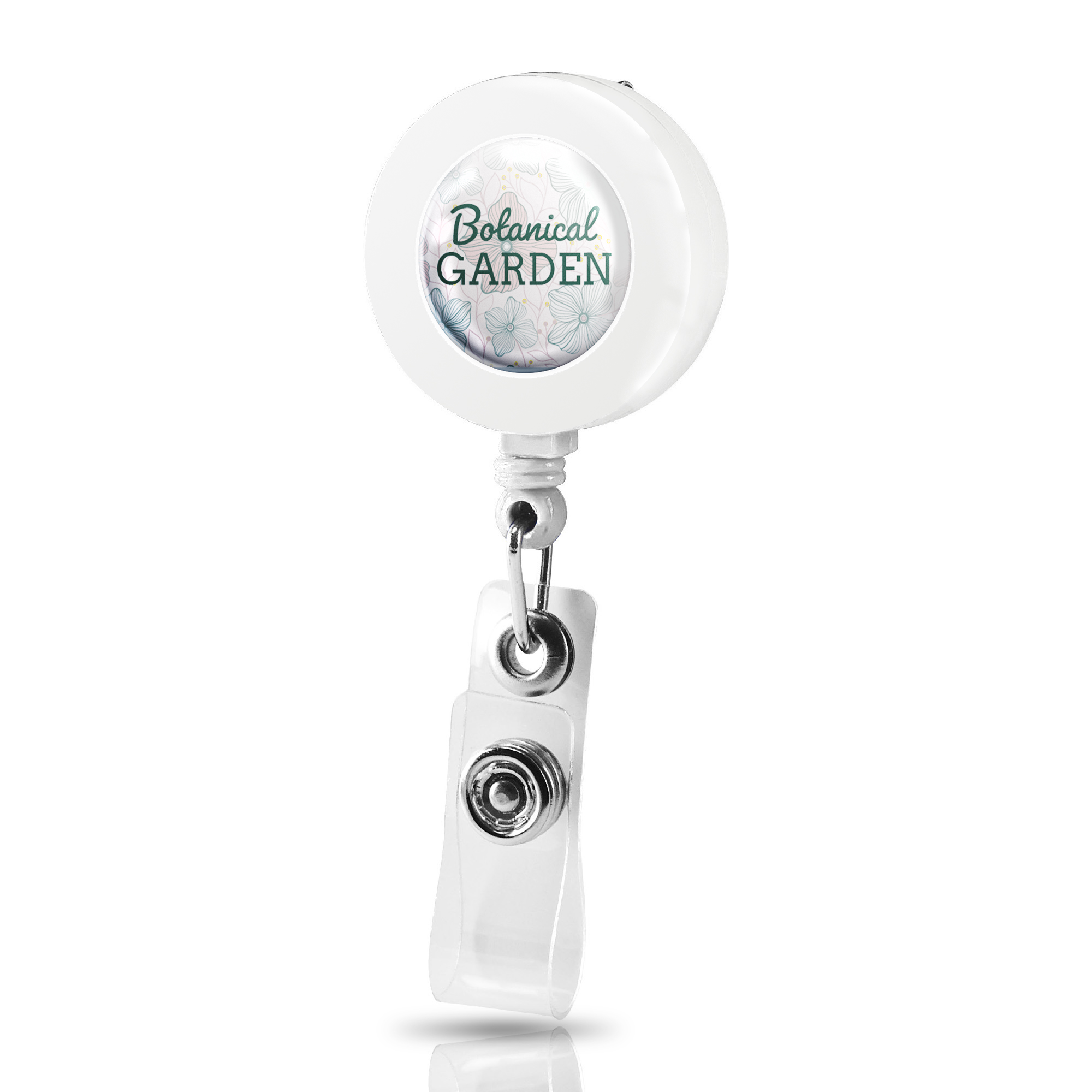 Extensível porta credenciais com acessório para resina. Este porta-credenciais é extensível e tem um acessório em metal na parte oposta.
