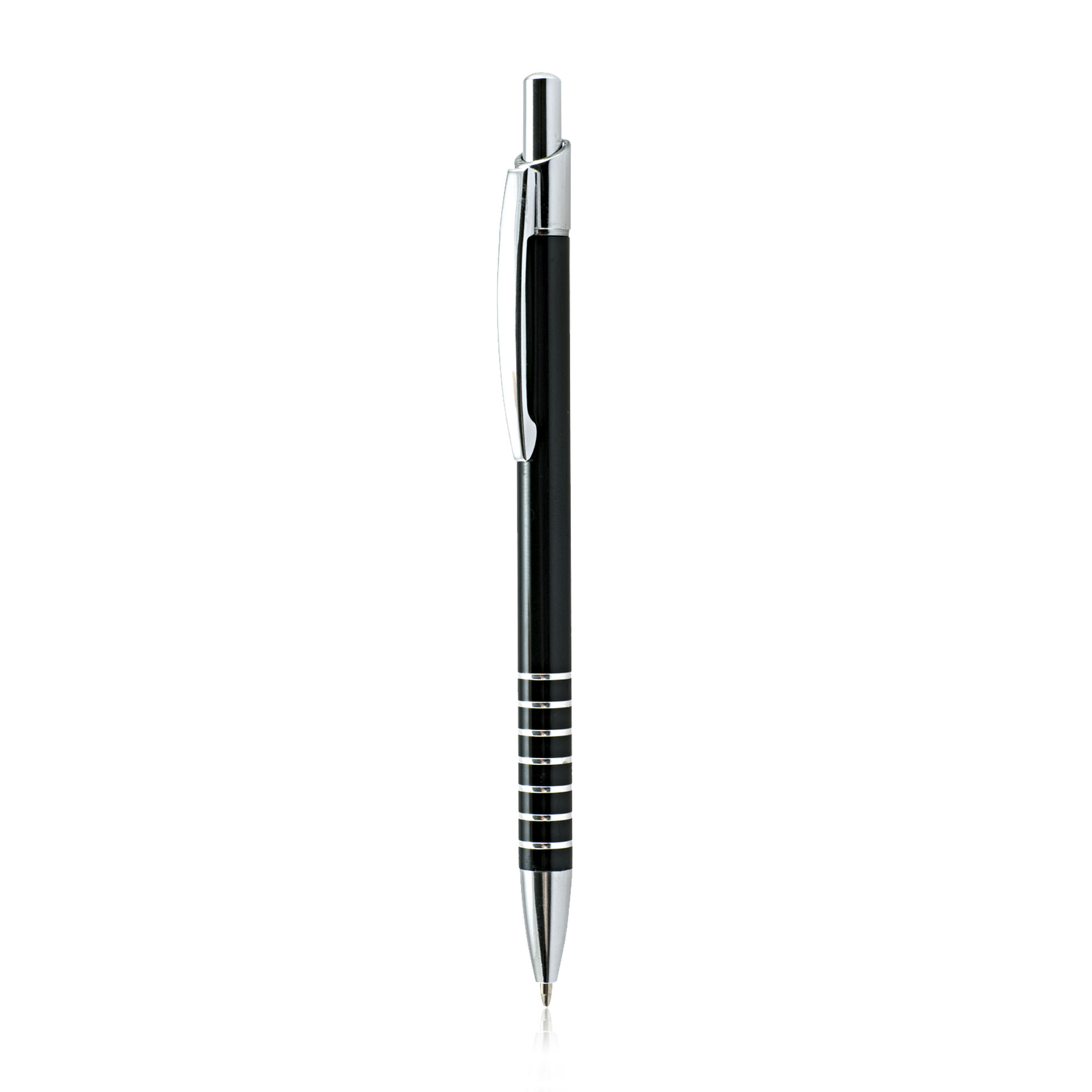 Esferográfica de metal, 7 anéis. Escrita preta, sistema pulsar. Clip e detalhes prateados. Um modelo clássico que nunca passa de moda.
