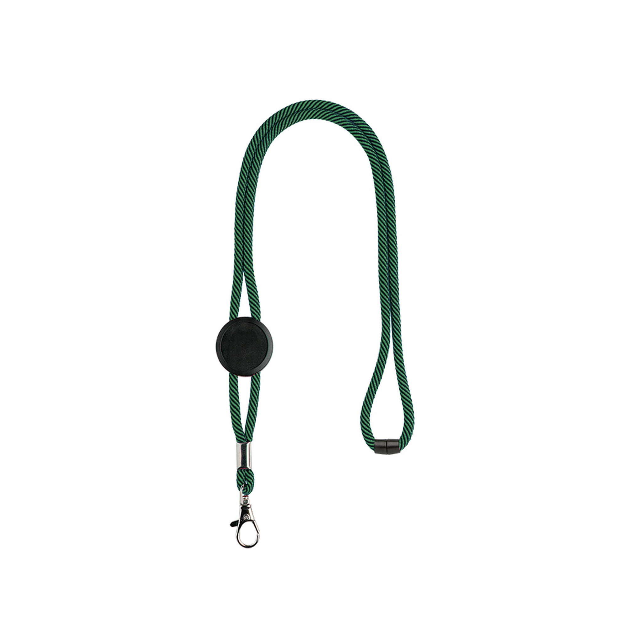 Lanyard em poliéster com ajuste, fecho de segurança e mosquetão