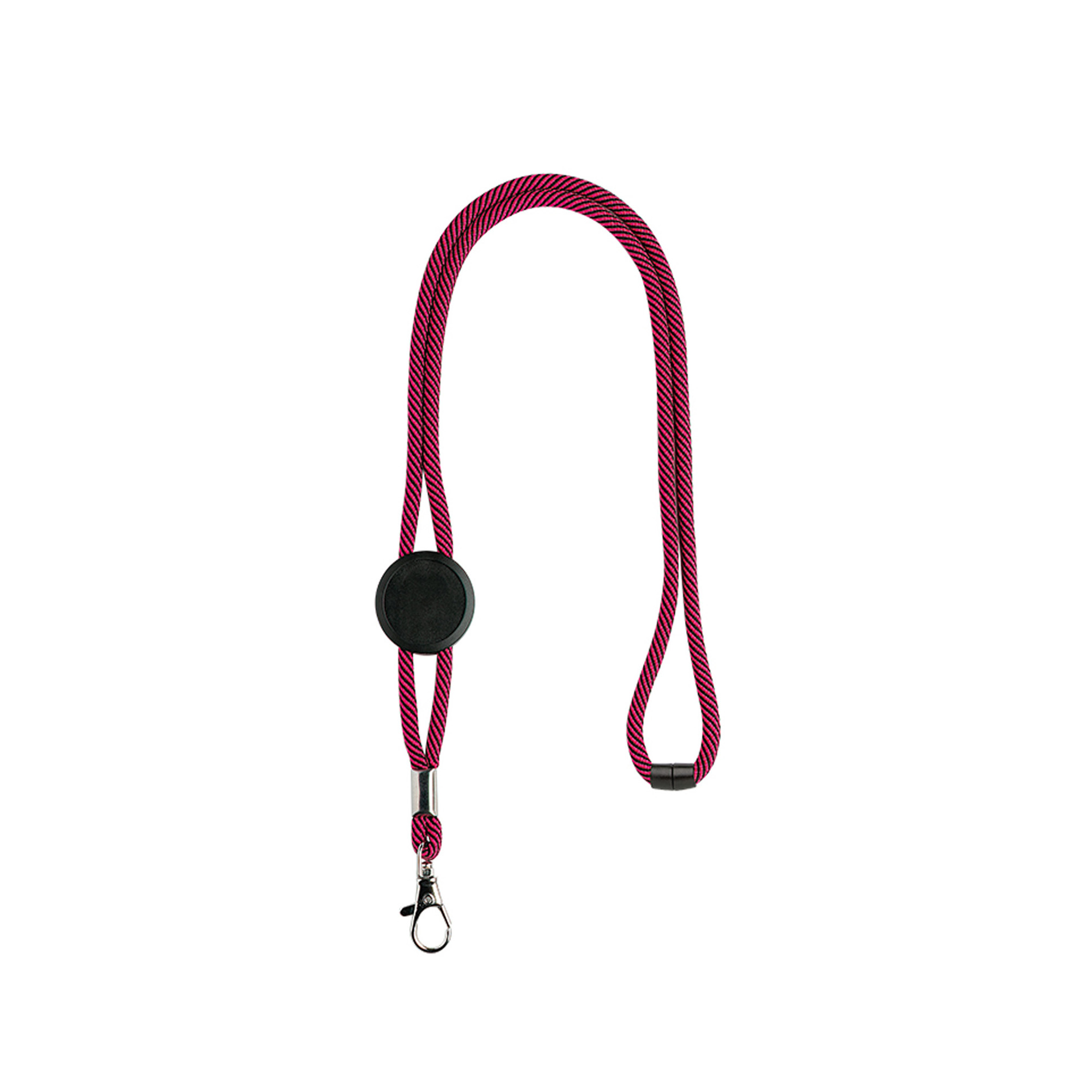 Lanyard tubular em poliéster, ajustável, fecho de segurança e mosquetão. Esta lanyard destaca-se pelo seu design tubular, conferindo-lhe um toque moderno e descontraído. O fecho de segurança permite que a possa utilizar de forma segura, e o ajustável em plástico foi especialmente desenhado para personalização através de resina. Adicione o seu logotipo, slogan ou design exclusivo para criar uma peça única que reflete a identidade da sua marca. Para tornar a personalização mais fácil pode adquirir a nossa resina 370487, criada especialmente para este ajustável