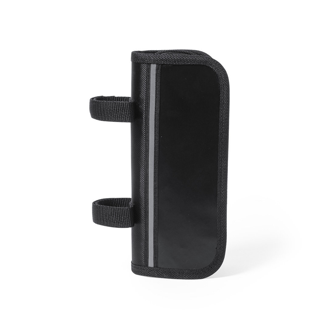 Completíssimo kit de reparação para bicicleta de 17 acessórios. Apresentado em resistente estojo de poliéster 600D, com fecho de correr e fitas de fixação mediante velcro. Inclui desmontadores de pneu, multi-ferramenta, chave fixa, bomba manual com dupla válvula, kit de reparação de furos e manual de instruções.